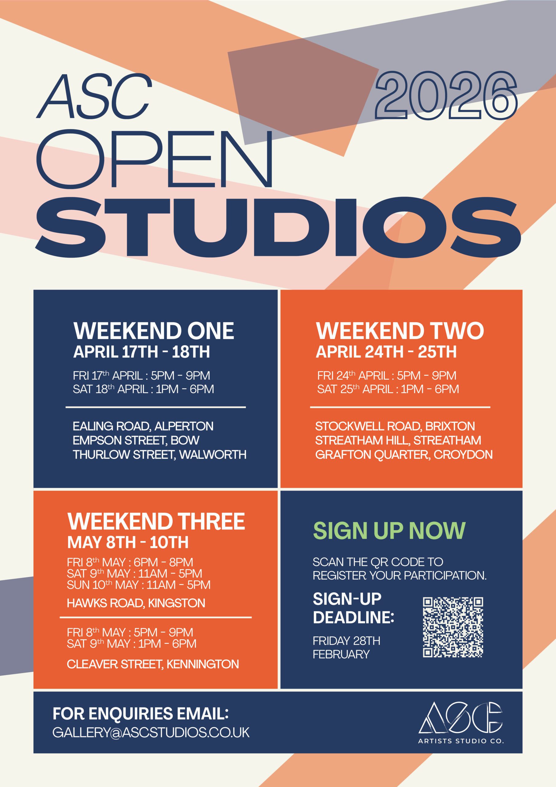 - Network with London’s larger creative community and increase your profile through ASCs marketing and social media.