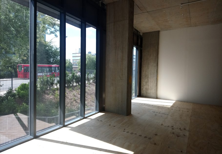 Large, bright, self-contained studio on the first floor. The studio benefits from lots of natural light via the floor to ceiling windows. Electric radiator, communal brush sinks, shared kitchen and use of exhibition/project space is all included. Wifi provided. Electricity is metered per individual studio and billed separately.